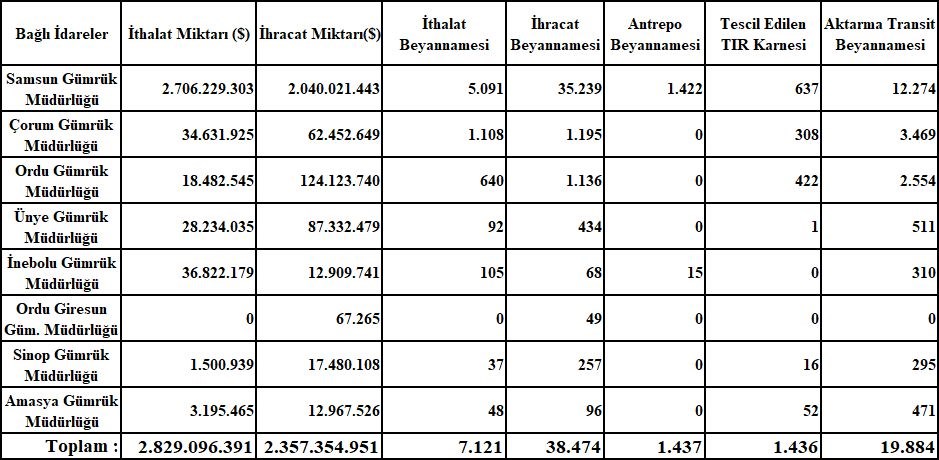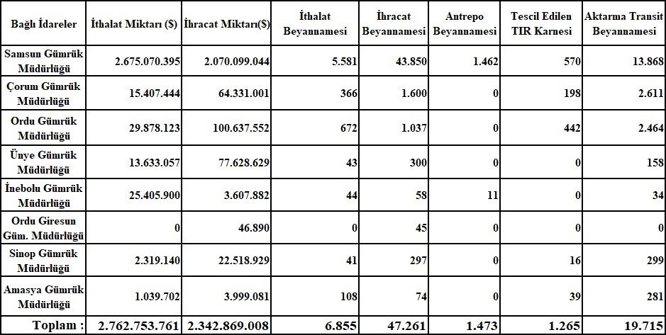 ORTA KARADENİZ GÜMRÜK VE DIŞ TİCARET BÖLGE MÜDÜRLÜĞÜ’NE AİT